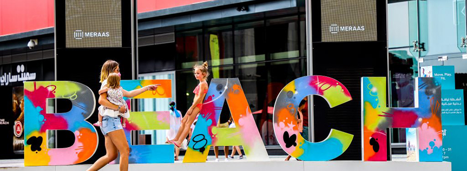 Myneandyours has also left his mark at JBR with his Exploration of Colour installation in the middle of a roundabout, featuring three striped cylindrical structures, the tallest being four metres high, painted with geometric forms in bright colours.